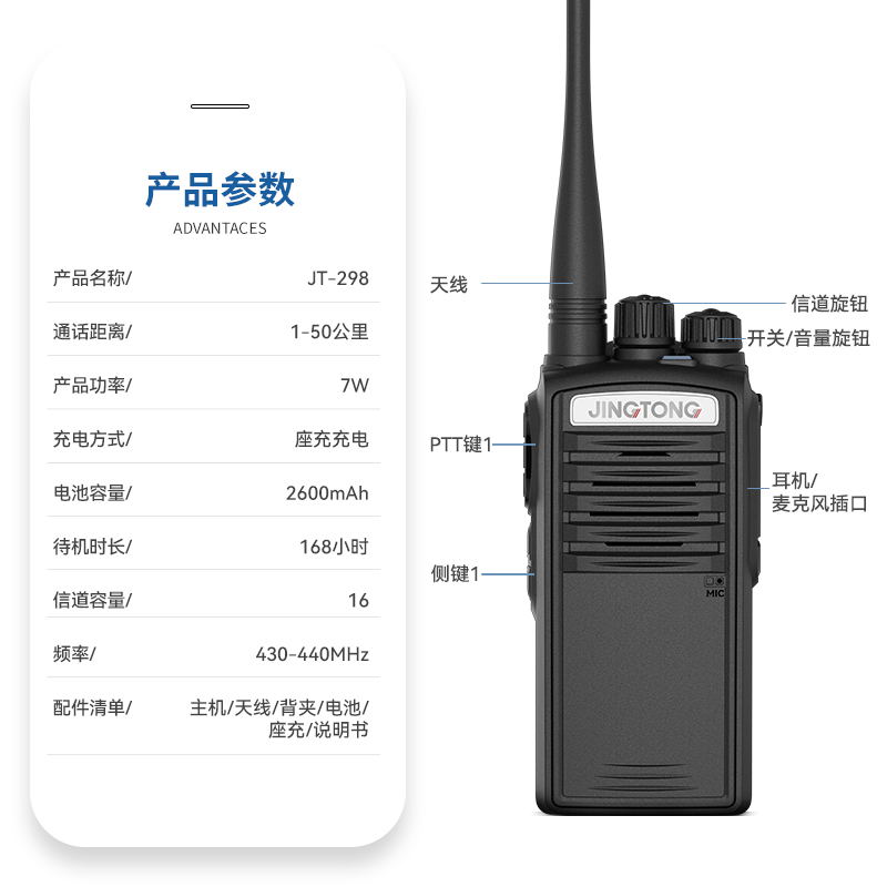數(shù)字和模擬亞音頻 特殊亞音頻 報(bào)警功能限時(shí)發(fā)射 VOX聲控發(fā)射功能,使操作更方便 中/英文語音報(bào)號功能,即使在黑暗中也能從容操作 2000mAh大容量鋰電池組,智能充電器. 外型美觀、結(jié)構(gòu)堅(jiān)固、性能可靠,參照美國FCC、MIL-STD-810F國際認(rèn)證標(biāo)準(zhǔn)進(jìn)行設(shè)計(jì)及生產(chǎn),進(jìn)行全面的高溫、低溫、濕度、振動(dòng)、沖擊等測試 |